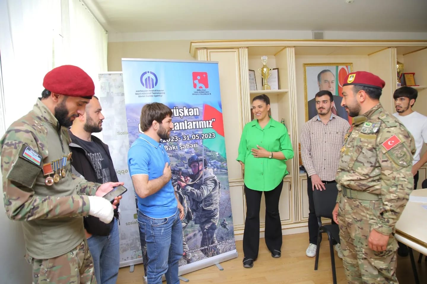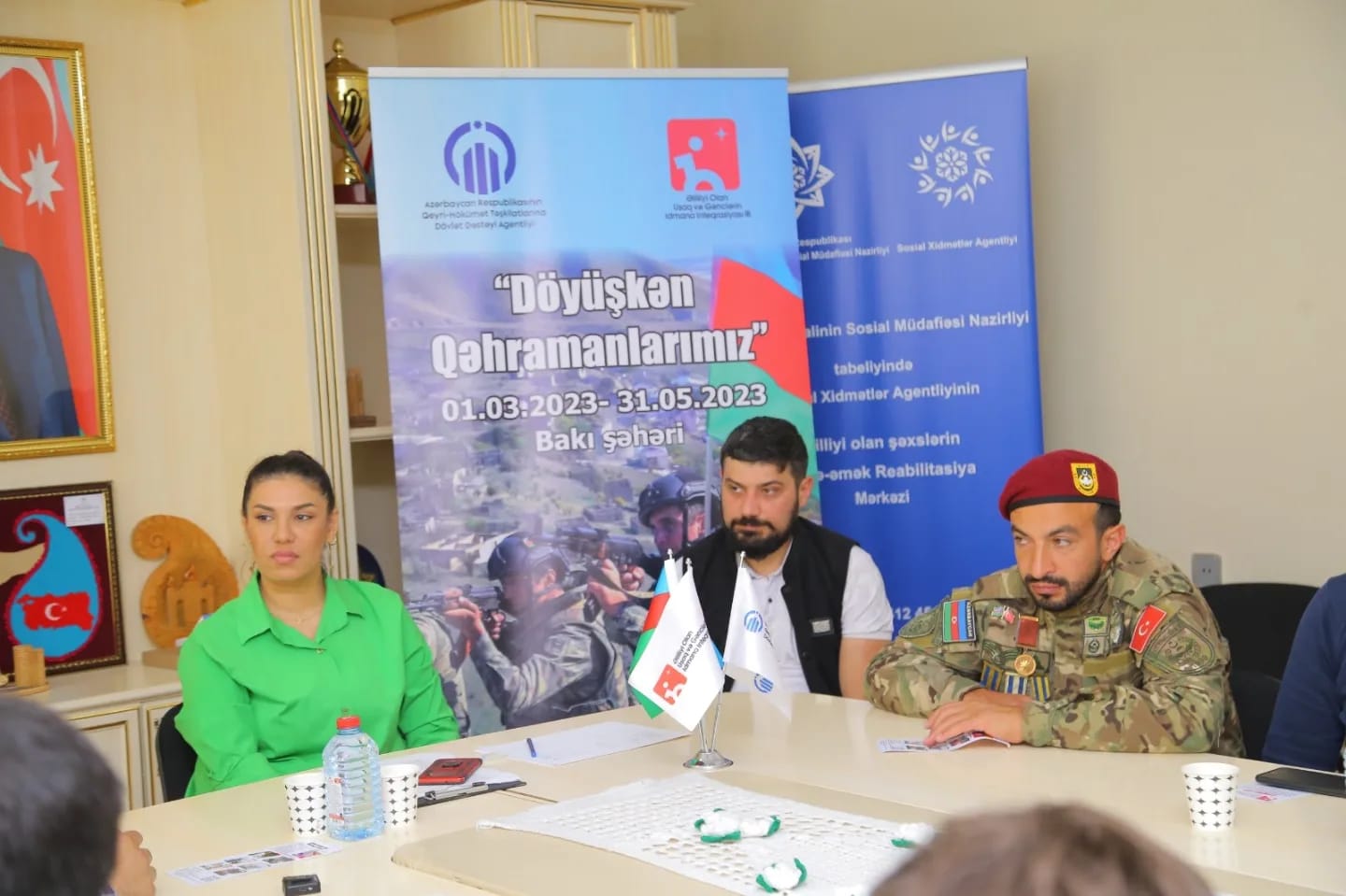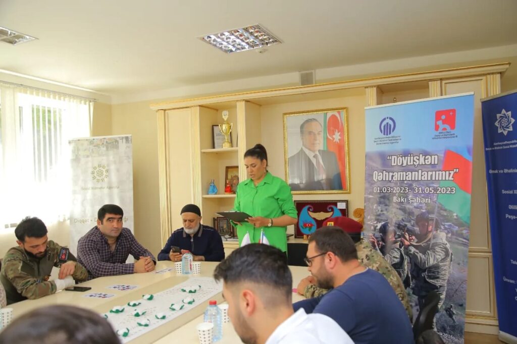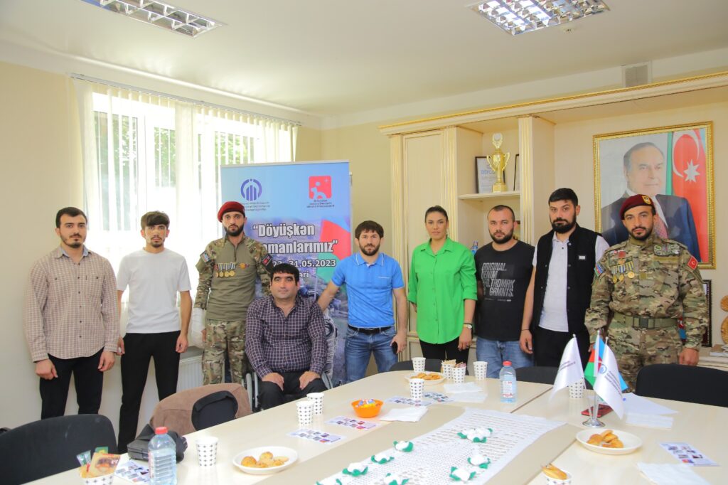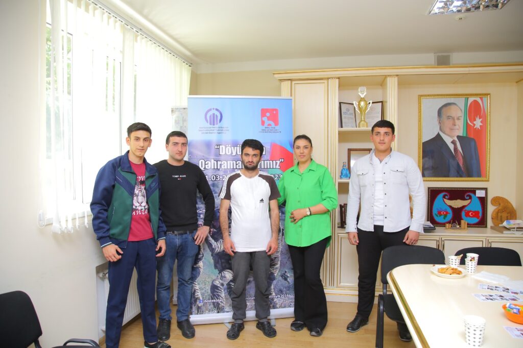Azərbaycan Respublikasının Qeyri-Hökumət Təşkilatlarının Dövlət Dəstəyi Agentliyinin maliyyə dəstəyi ilə Əlilliyi Olan Uşaq və Gənclərin İdmana İnteqrasiyası İB-nin, “Döyüşkən Qəhrəmanlarımız” adlı layihəsi davam edir. Bu gun tədbirimiz Ramana qəsəbəsində yerləşən, Əlilliyi olan şəxslərin peşə-əmək reabilitasiya mərkəzində keçirildi. Tədbirin mövzusu: Qazilərimizin Paralimpiya oyunlarına cəlb olunması və motivasiya idi. Tədbirin qonaqları: Qazilər, Paralimpiyaçılar və olimpiyaçılar idi. Tədbir də peşə-əmək reabilitasiya mərkəzinin fiziki məhdudiyyətli gəncləri də iştirak edirdi.